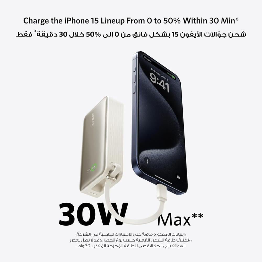 ما تحصل عليه: باور بانك انكر Nano (30 واط، كابل USB-C مدمج)، دليل ترحيب، ضمان خالٍ من الإجهاد لمدة 24 شهرًا